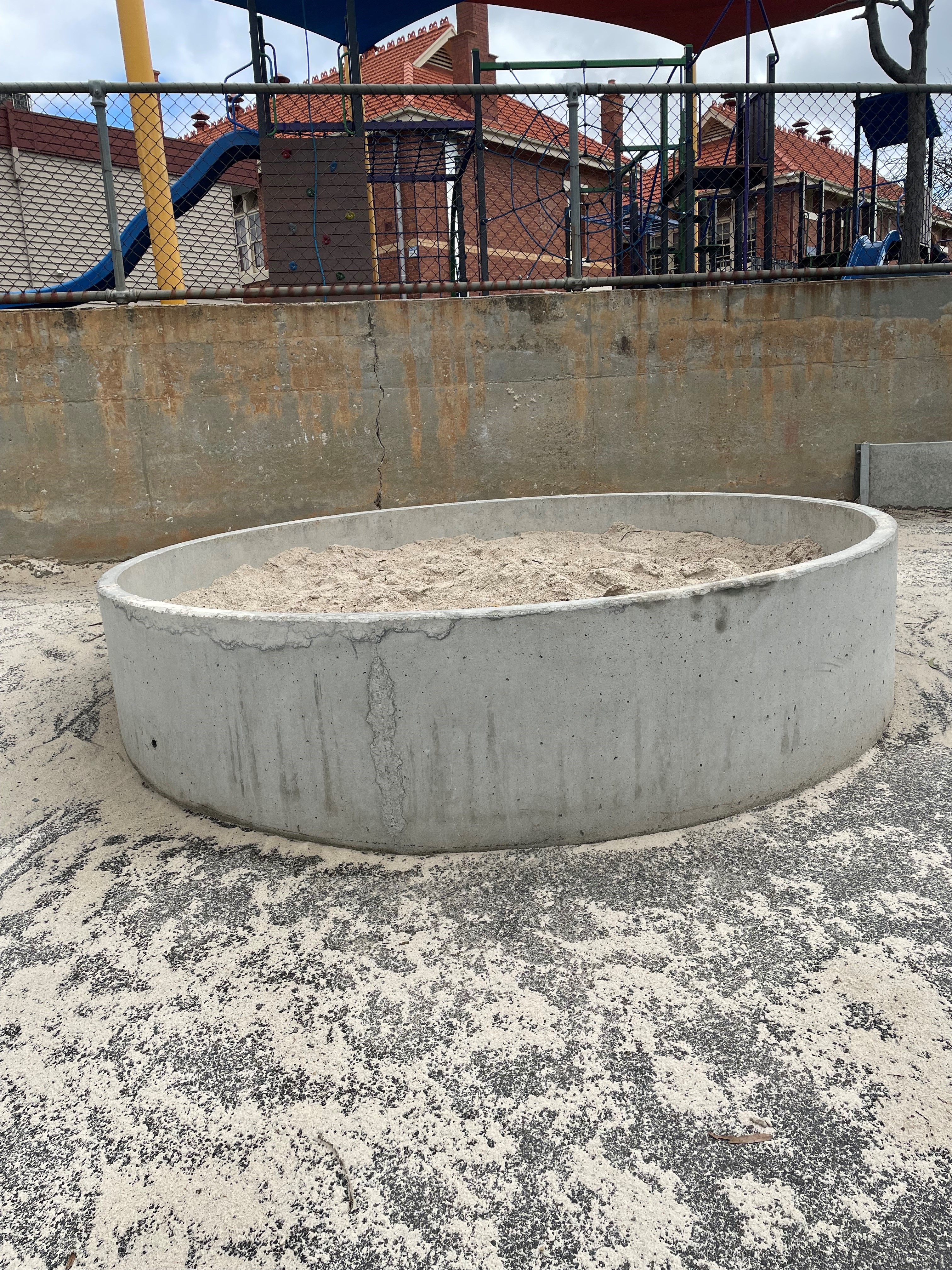 Other play areas include a rock climbing wall and sandpit behind the multipurpose building.